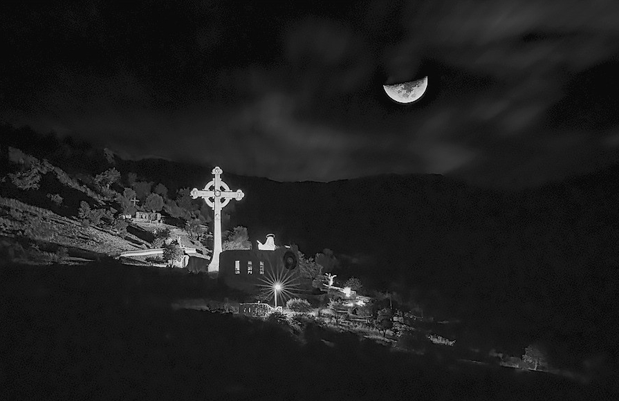 Where Cerro de la Virgen greets the night,